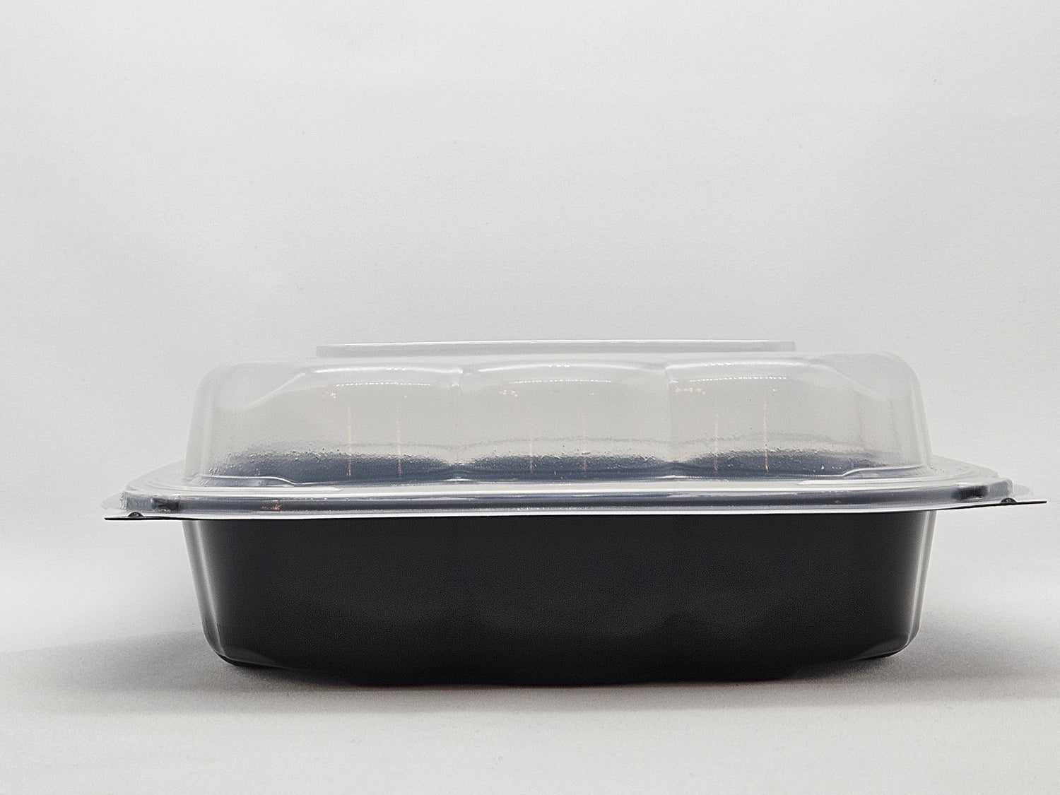 Crafted from crack-resistant polypropylene, this container provides exceptional durability, supporting even heavier foods without bending or cracking, ensuring your take-out orders stay secure during transit, saving you money and preventing hassle. Conveniently microwave-safe, it withstands temperatures up to 248°F, making it suitable for use with heat lamps or warming units. With a sleek black base and a clear, anti-fog lid, this container showcases your food beautifully while minimizing condensation for enhanced product visibility.