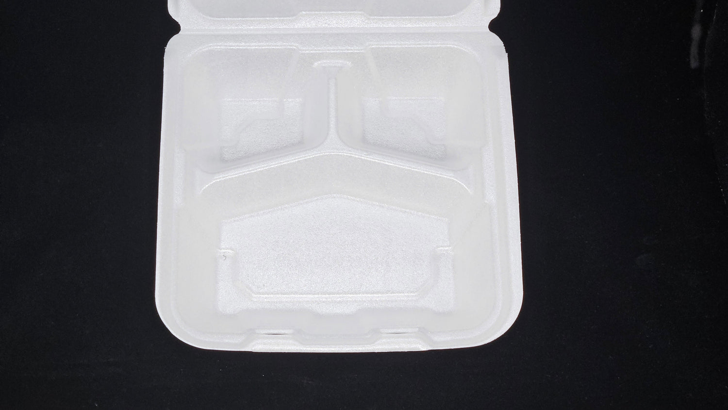 Styrofoam Hinged Clamshell 8*8*2.75 3 Compartment 150/Case
