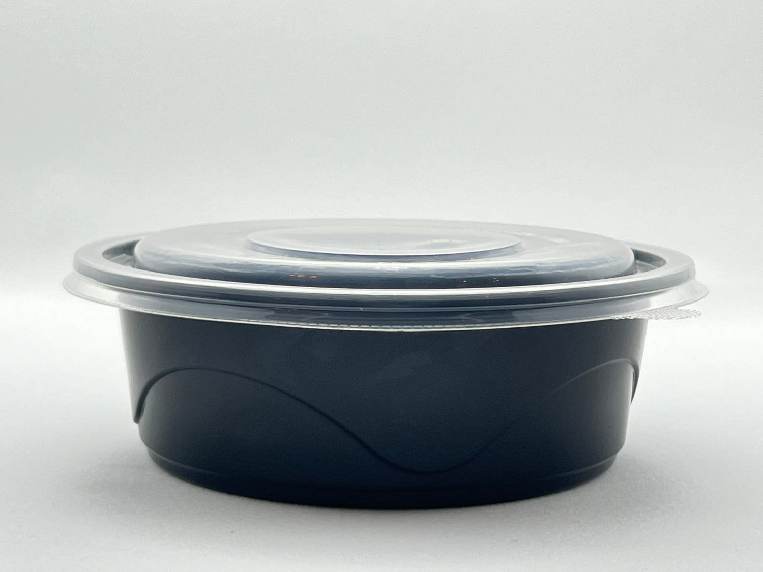 Enhance your take-out service effortlessly with this 32 oz. black round container and lid combo! The clear, snug-fitting lid provides excellent visibility while preventing spills and messes. With its generous capacity, this container is ideal for serving salads, pastas, or small entrees, and the flat top and bottom make it easy to stack in to-go bags. Perfect for kiosks, food trucks, convenience stores, or restaurants, it's also freezer-friendly for convenient food storage and microwave-safe for quick reheating.